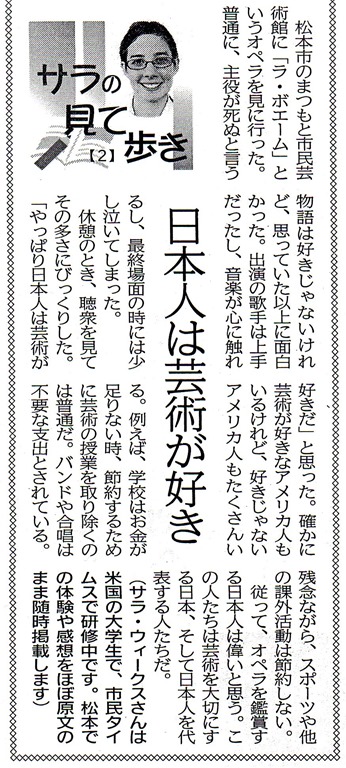 今日、知り合いの方から「新聞に載ってたましたよ!」と、私の見落としていました記事を持って来て下さいました。その記事を読んであまりに、嬉しいことを書いていただいていましたので、投稿します。