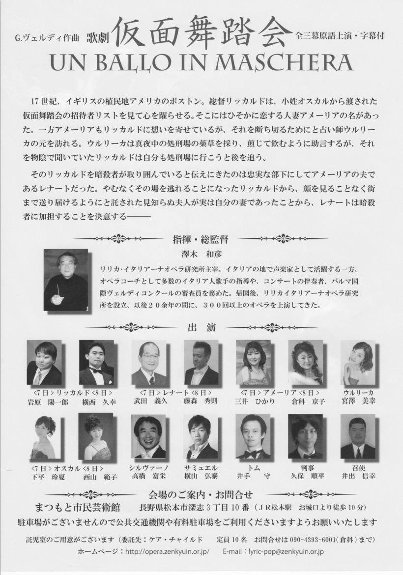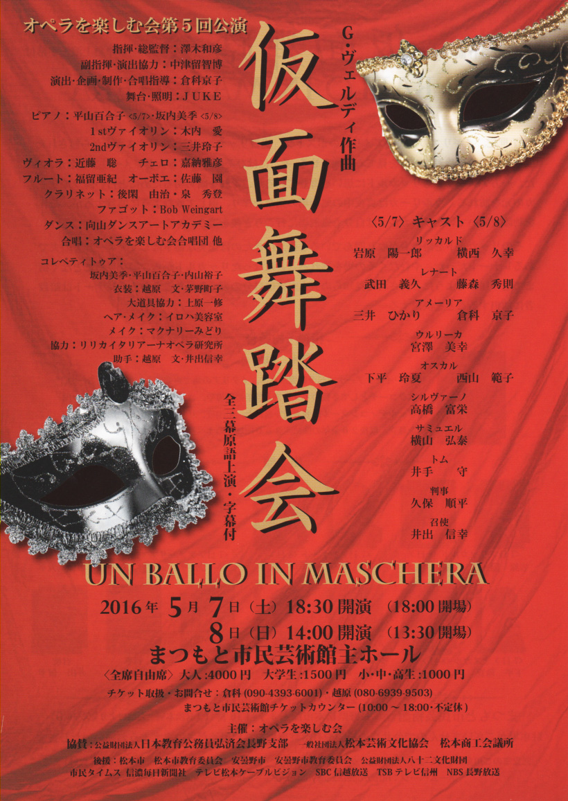 オペラを楽しむ会第5回公演「仮面舞踏会」2016/5/7,8